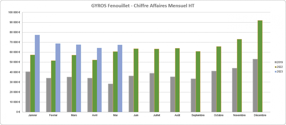 + 11% de chiffre d’affaires en mai 2023 par rapport à mai 2022 pour le restaurant pilote Gyros !